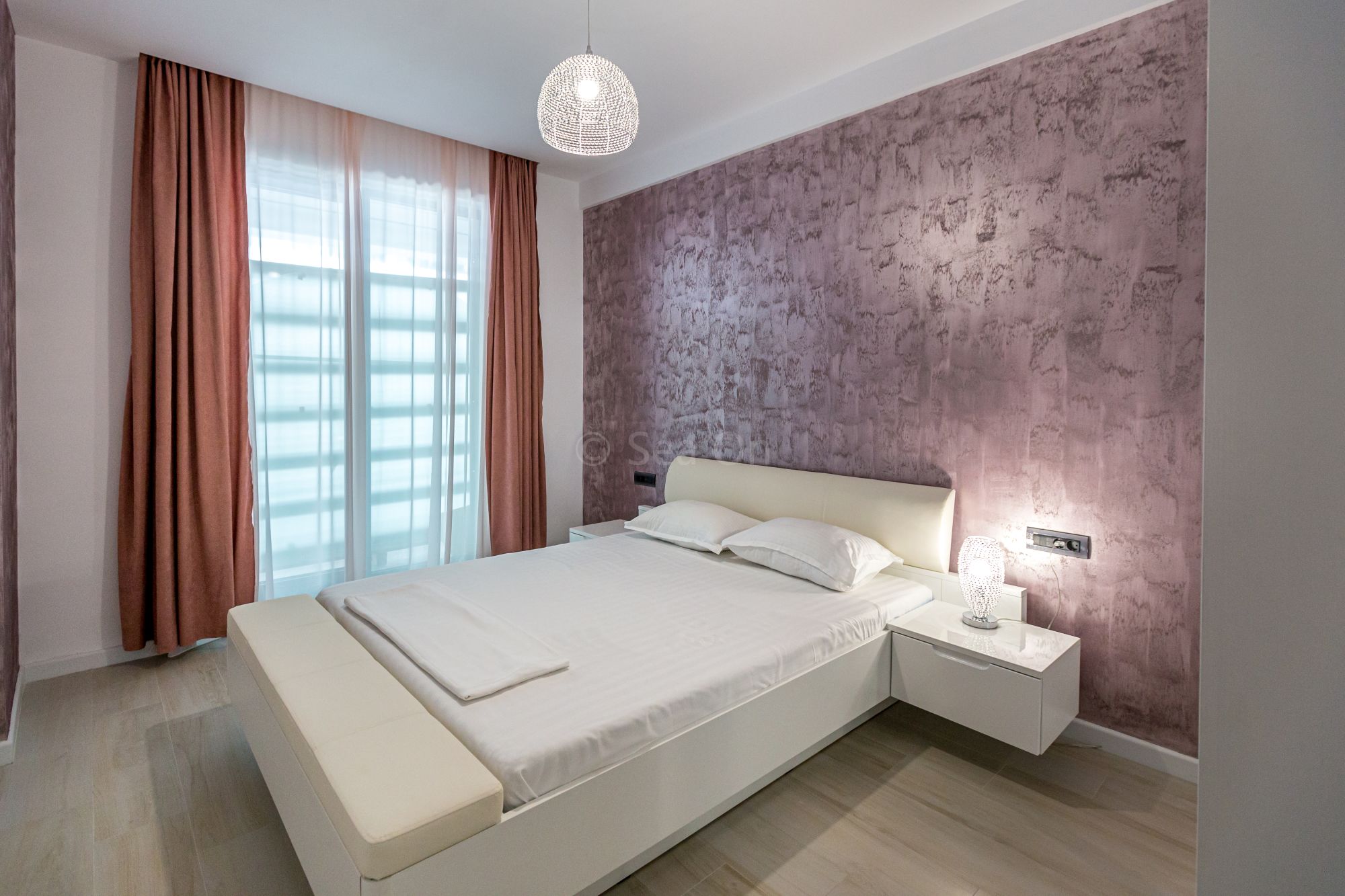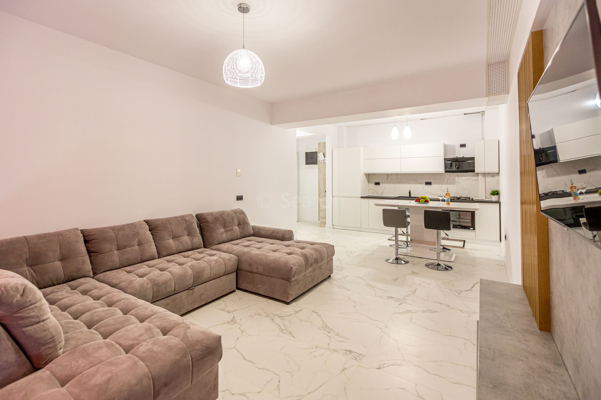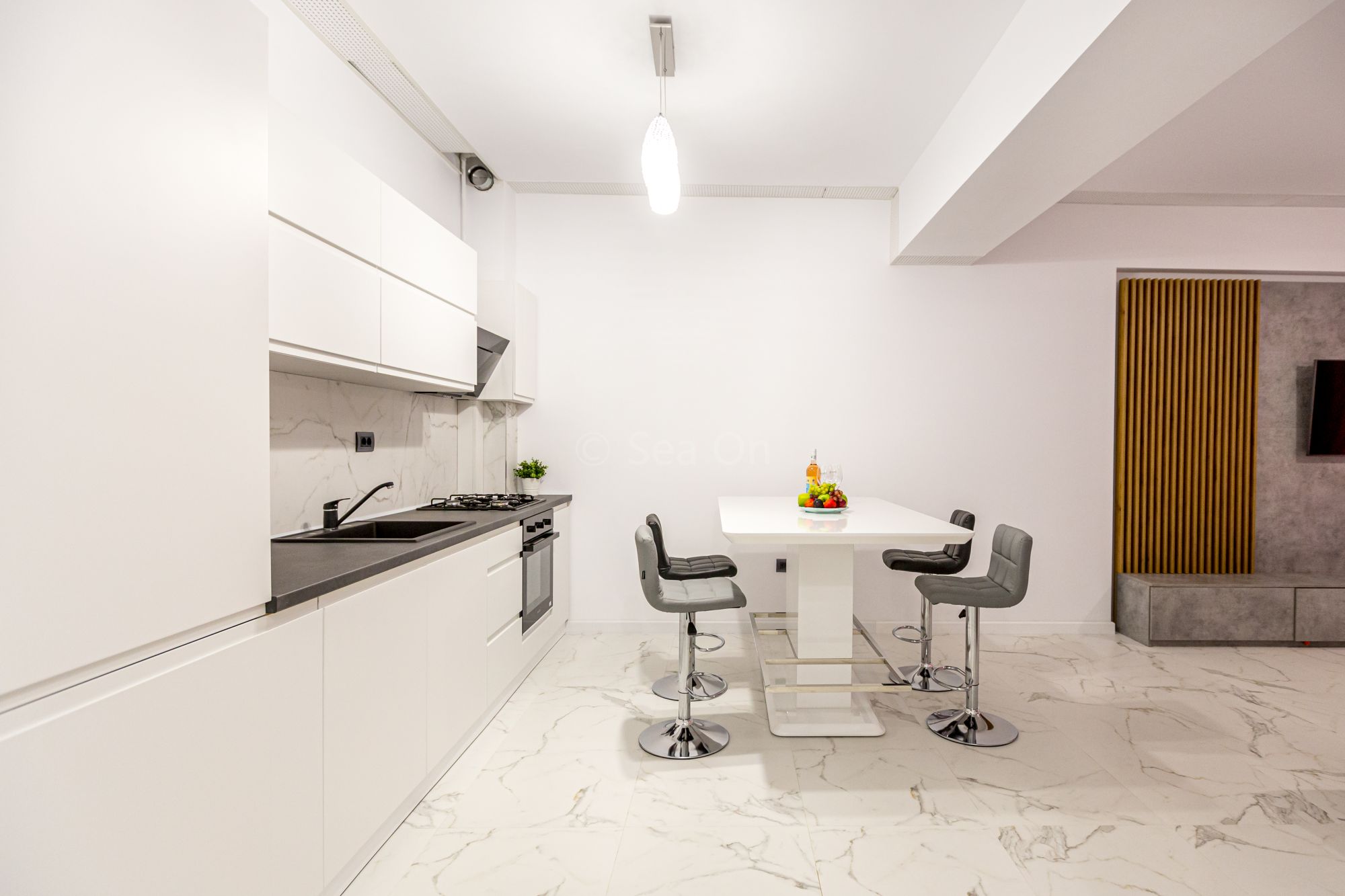 Un apartament cu vedere laterala sau frontala la mare, proiectat inteligent, avand un spatiu generos, design modern si personalizat. Este complet echipat, dispune de sistem Smart Home, mobilier de înaltă calitate, oferind confort, funcţionalitate și răsfăț.