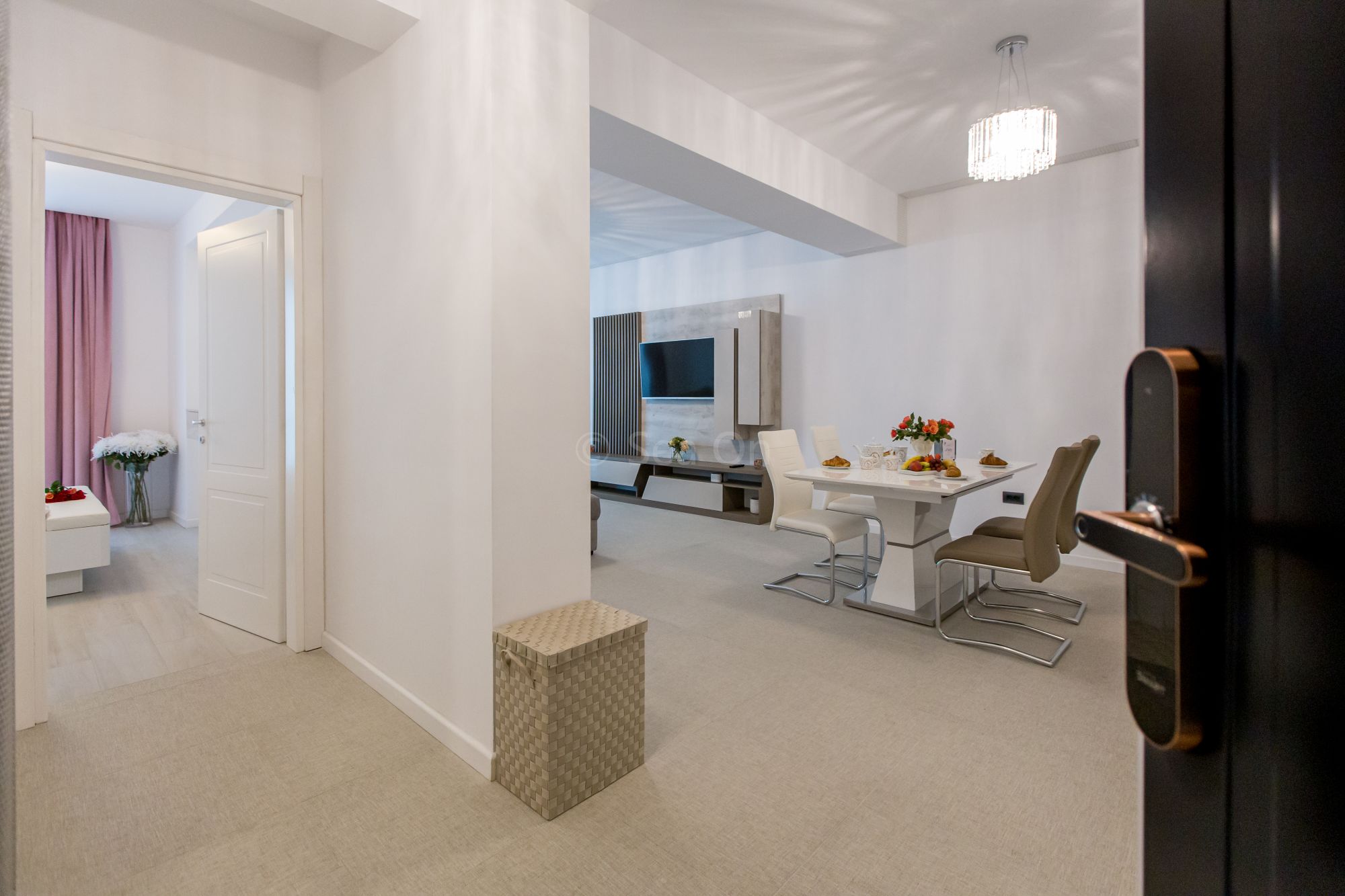 Un apartament cu vedere laterala sau frontala la mare, proiectat inteligent, avand un spatiu generos, design modern si personalizat. Este complet echipat, dispune de sistem Smart Home, mobilier de înaltă calitate, oferind confort, funcţionalitate și răsfăț.