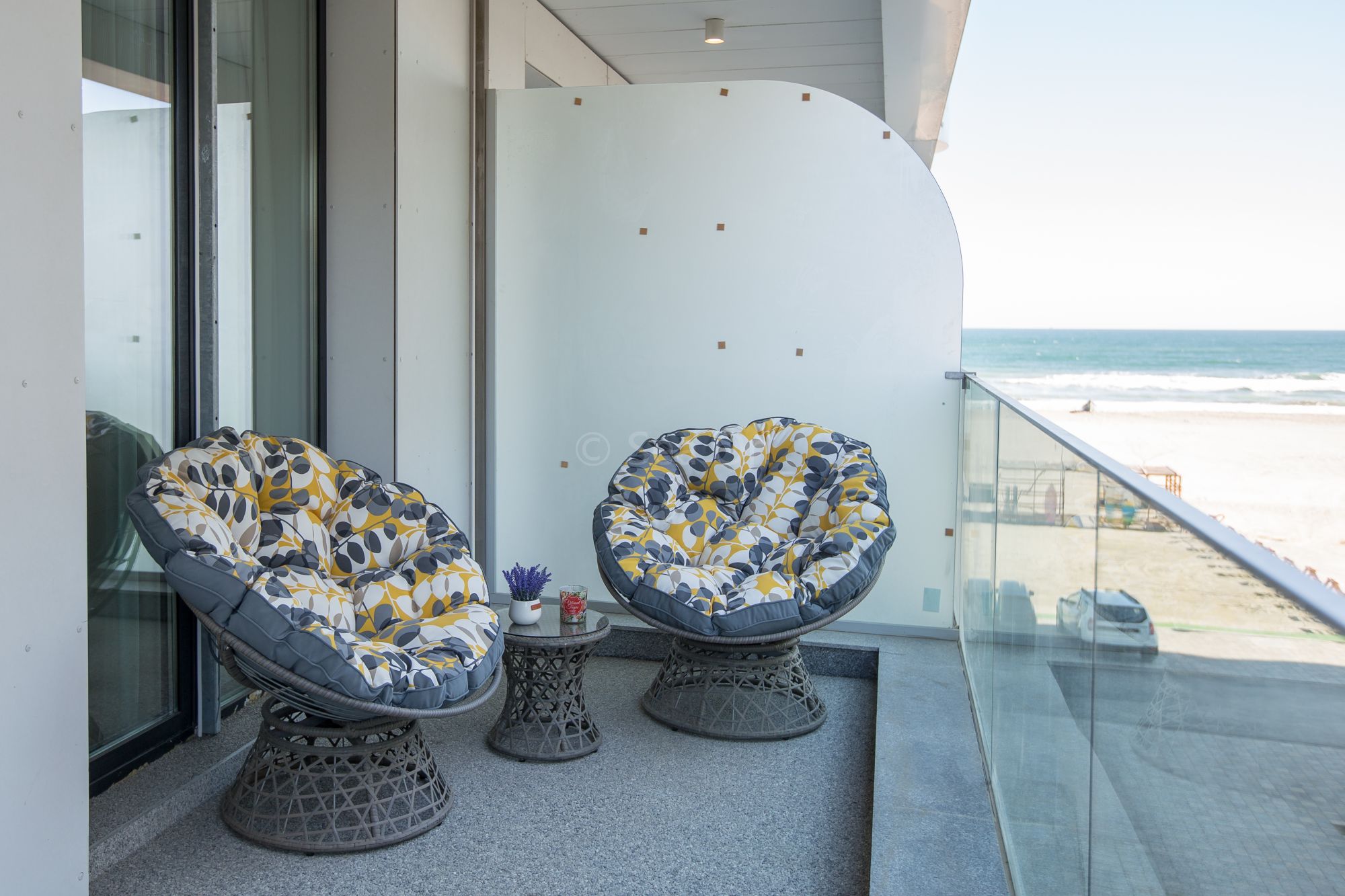 Apartamentele noastre dispun de terase, unde vă puteți bucura de briza mării, savurând cafeaua de dimineață sau admirând luna răsărind din mare
