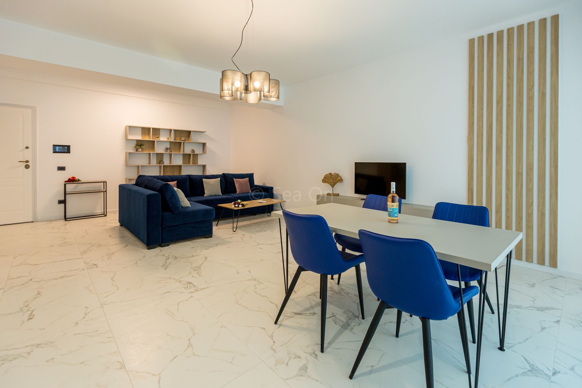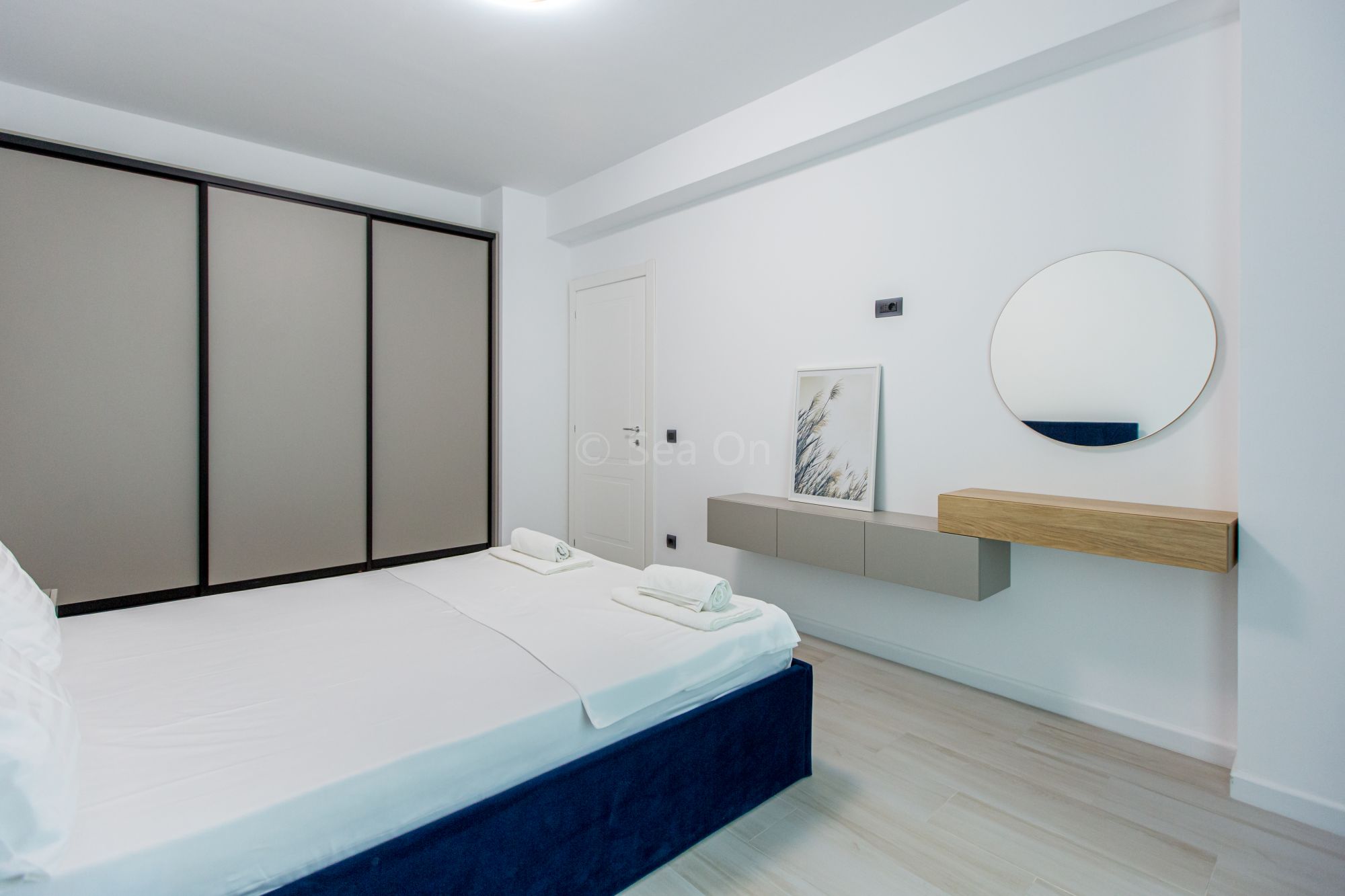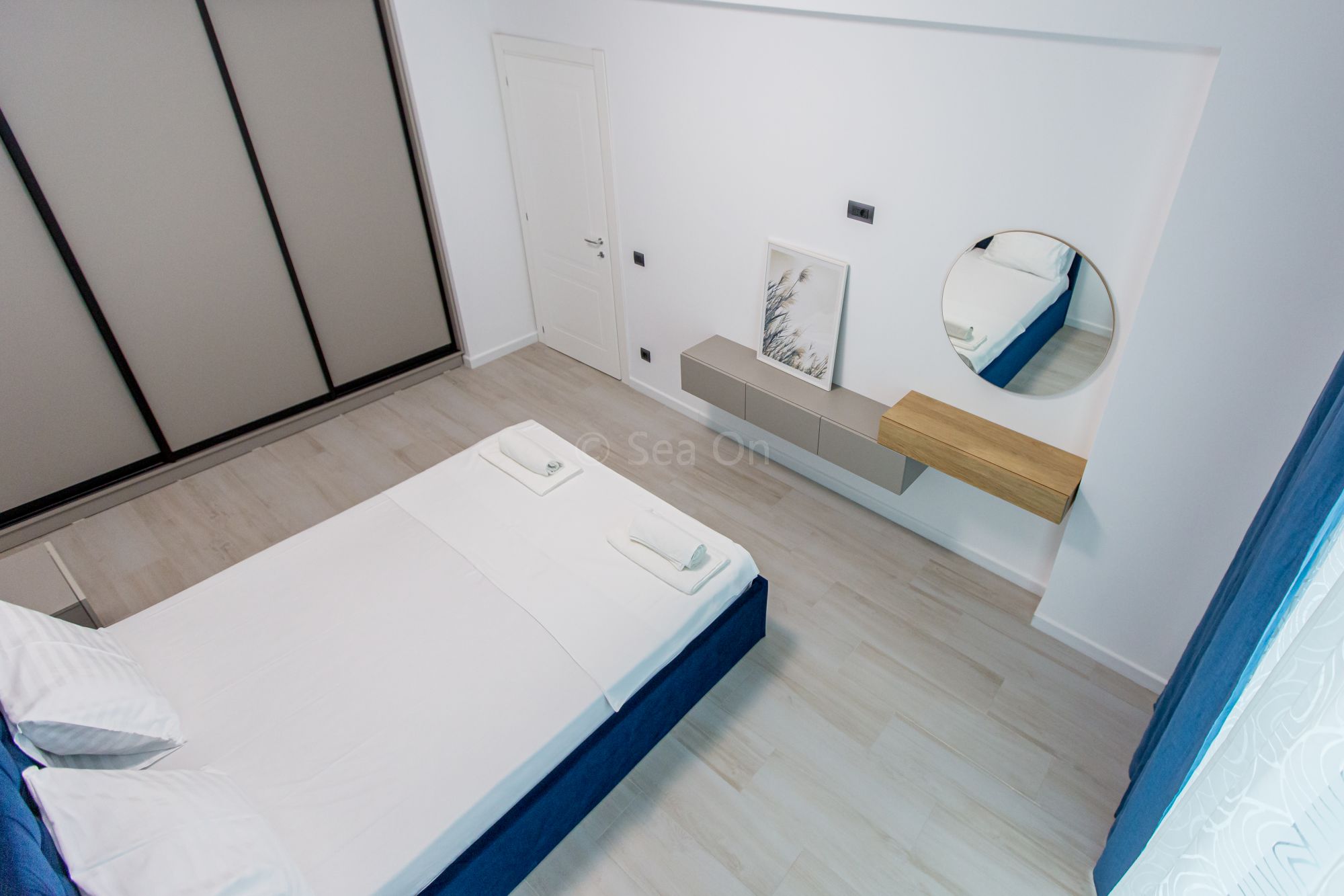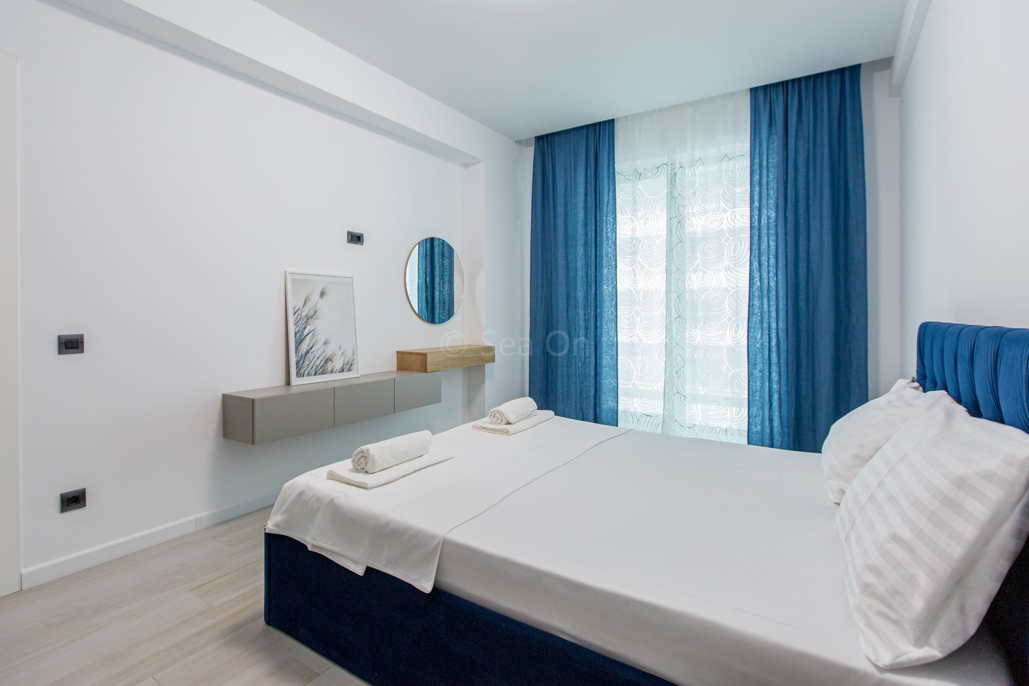 Un apartament cu vedere laterala sau frontala la mare, proiectat inteligent, avand un spatiu generos, design modern si personalizat. Este complet echipat, dispune de sistem Smart Home, mobilier de înaltă calitate, oferind confort, funcţionalitate și răsfăț.
