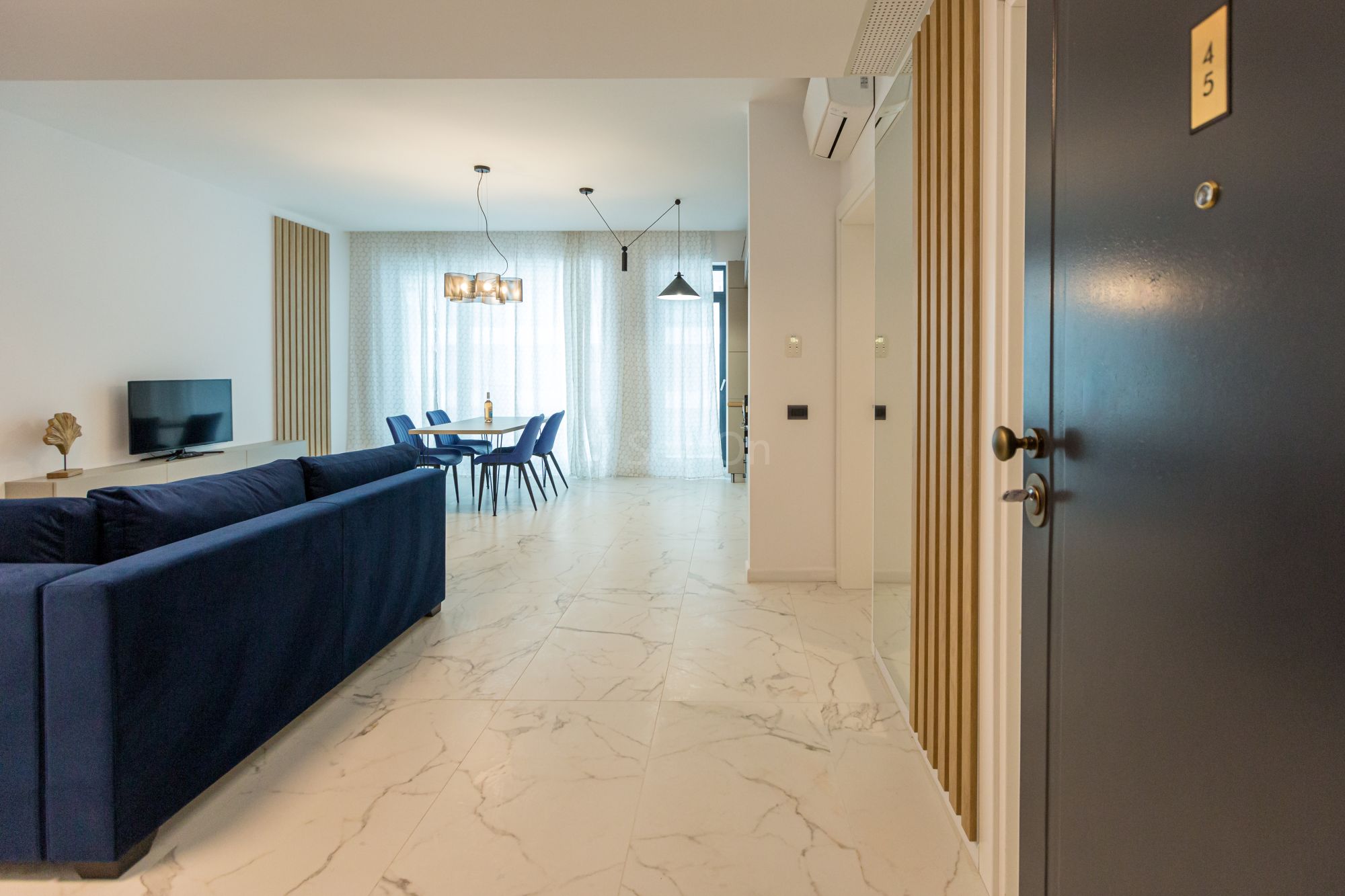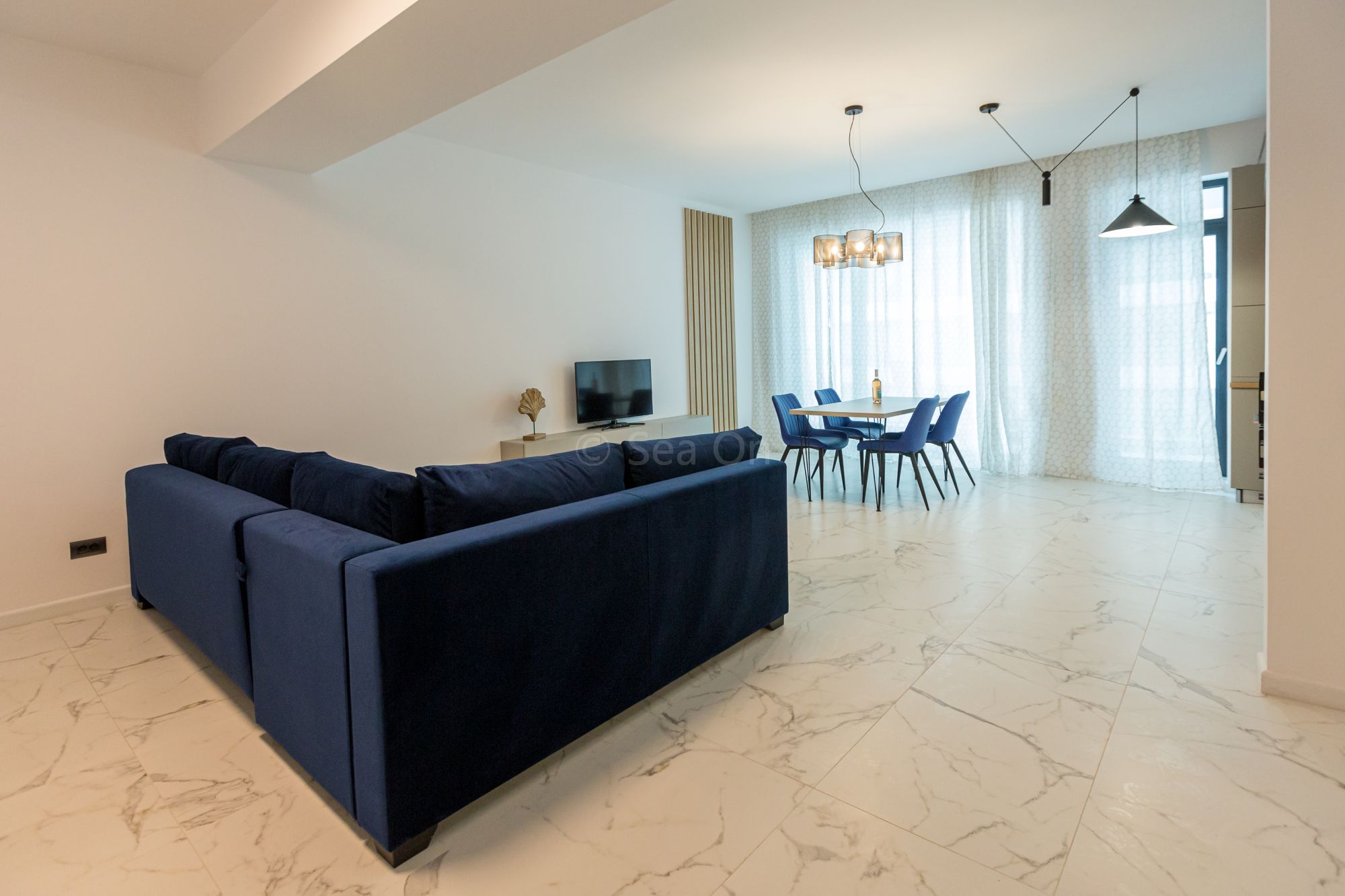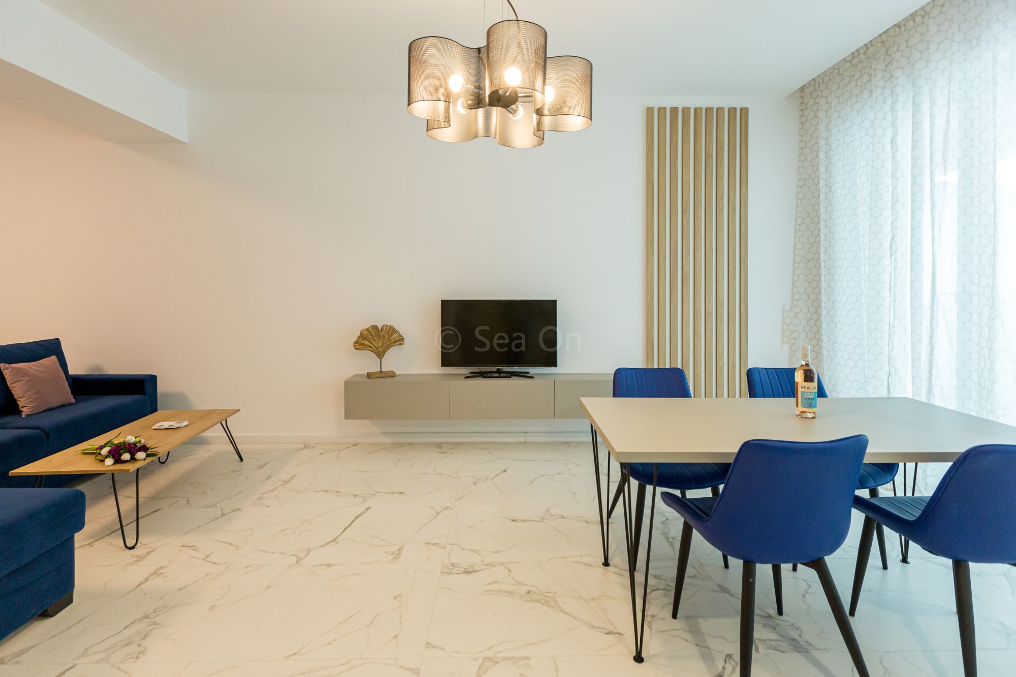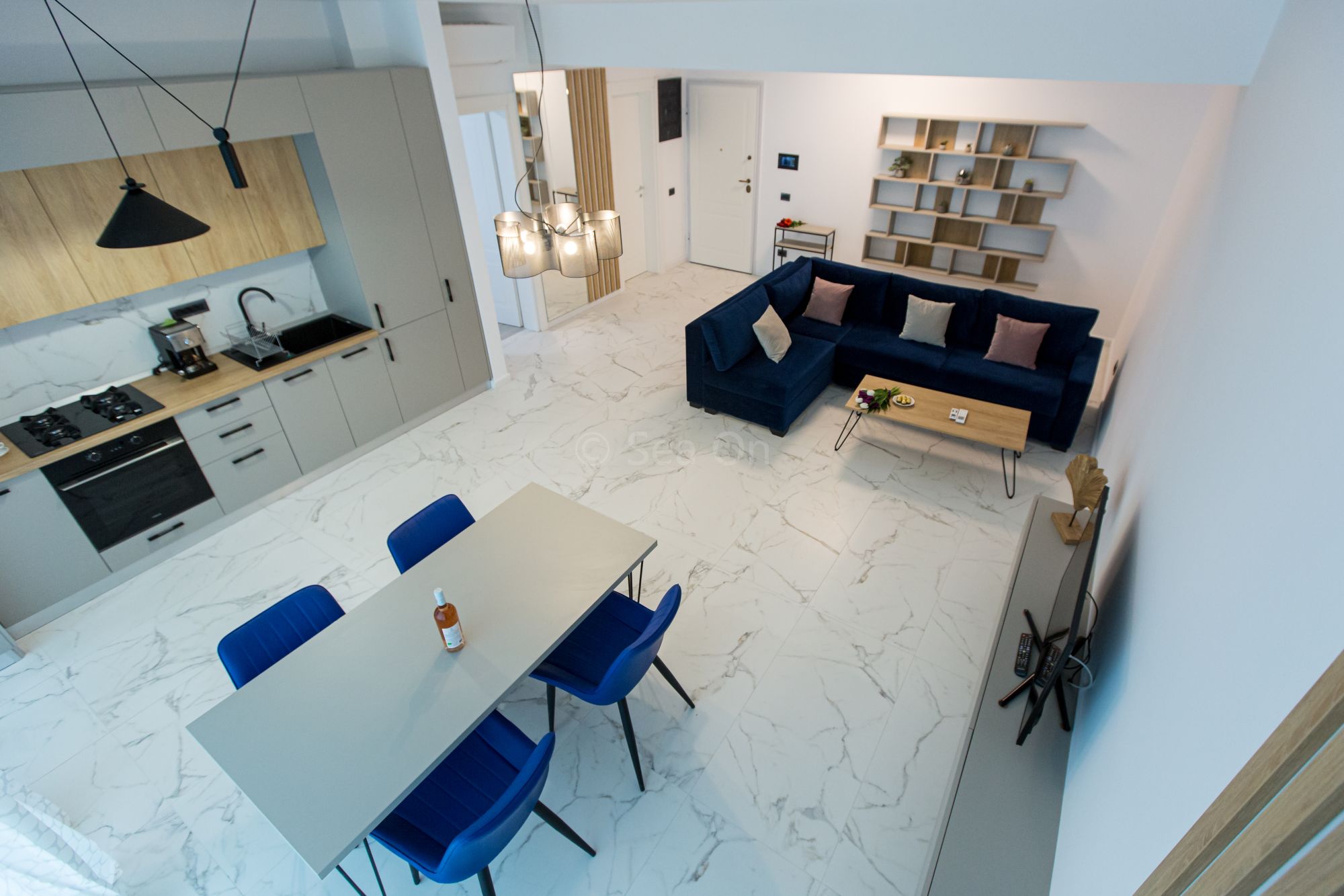 Un apartament cu vedere laterala sau frontala la mare, proiectat inteligent, avand un spatiu generos, design modern si personalizat. Este complet echipat, dispune de sistem Smart Home, mobilier de înaltă calitate, oferind confort, funcţionalitate și răsfăț.