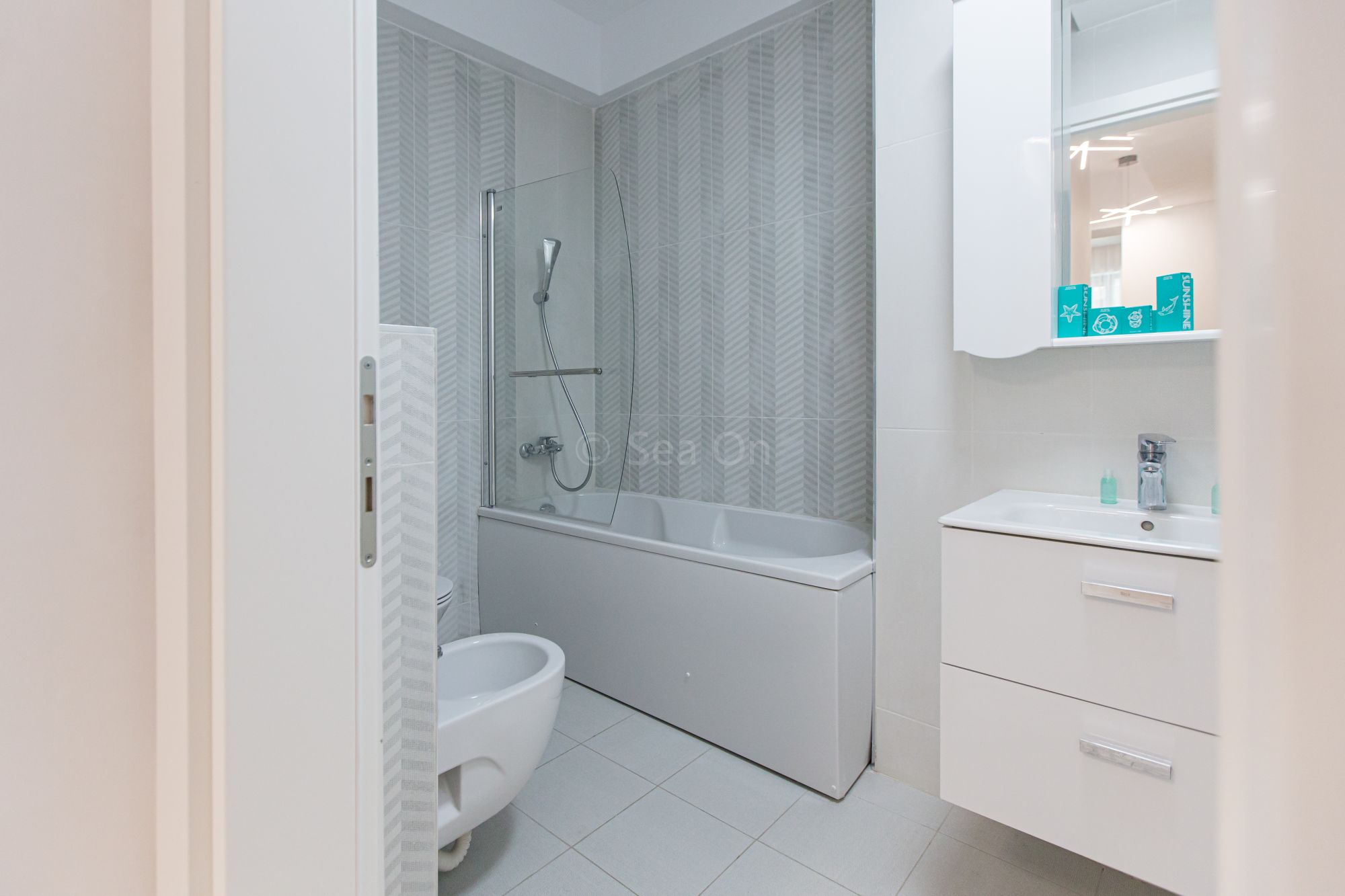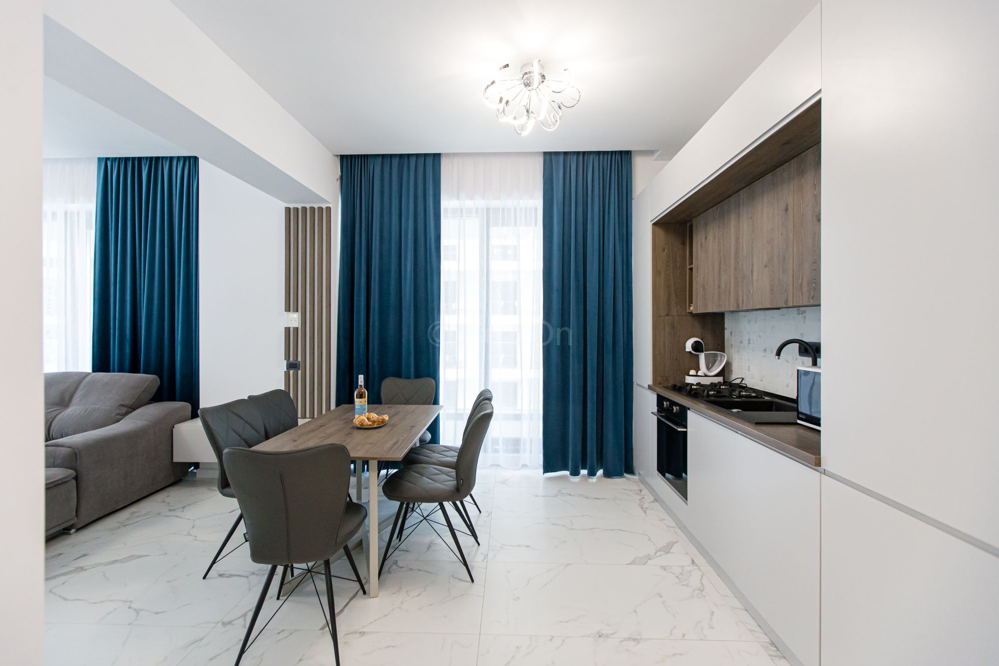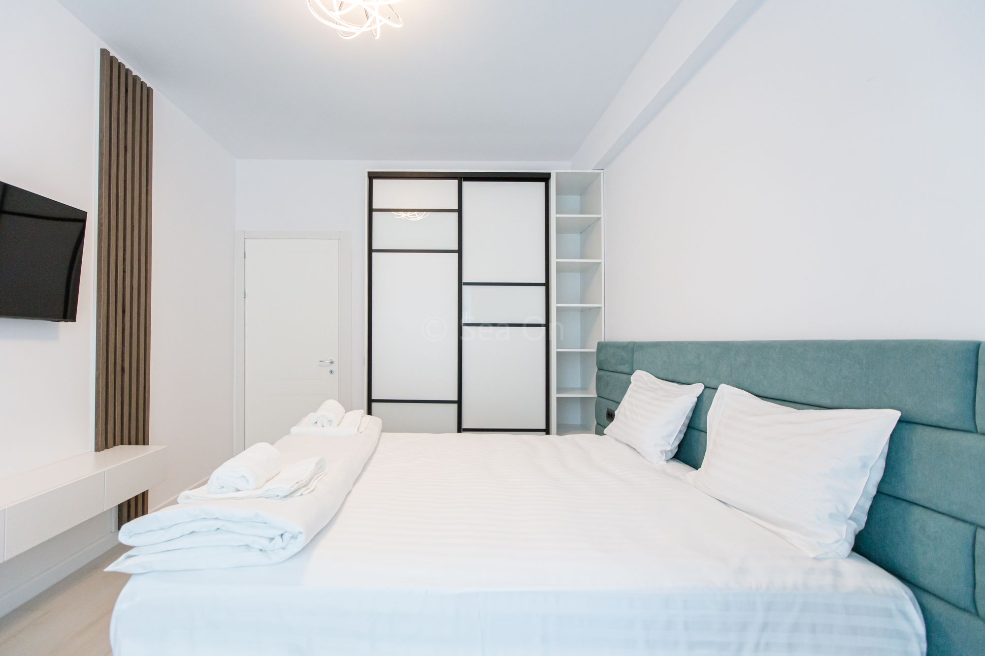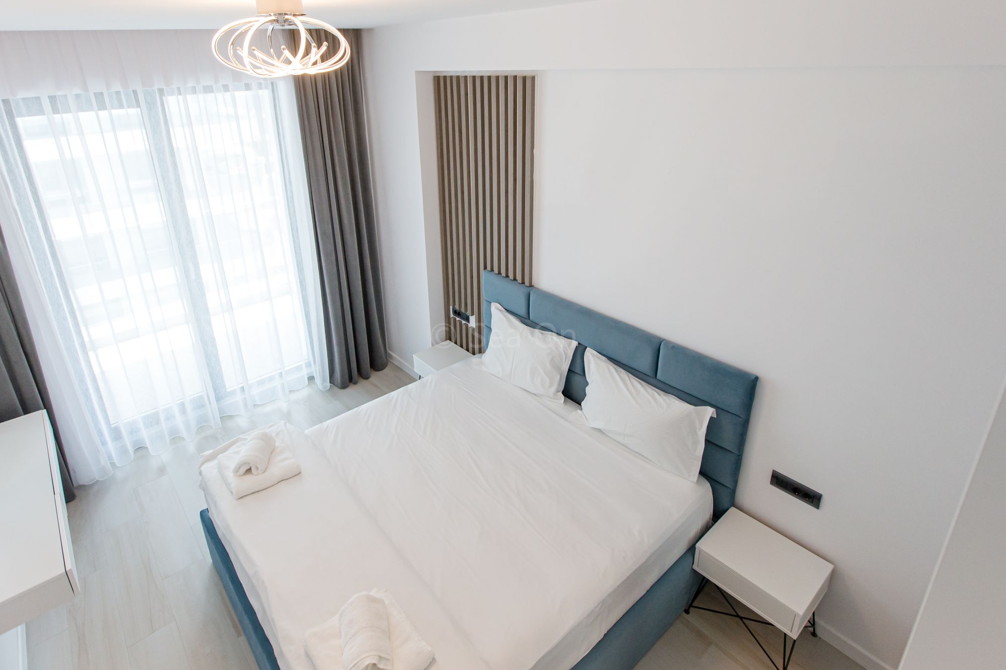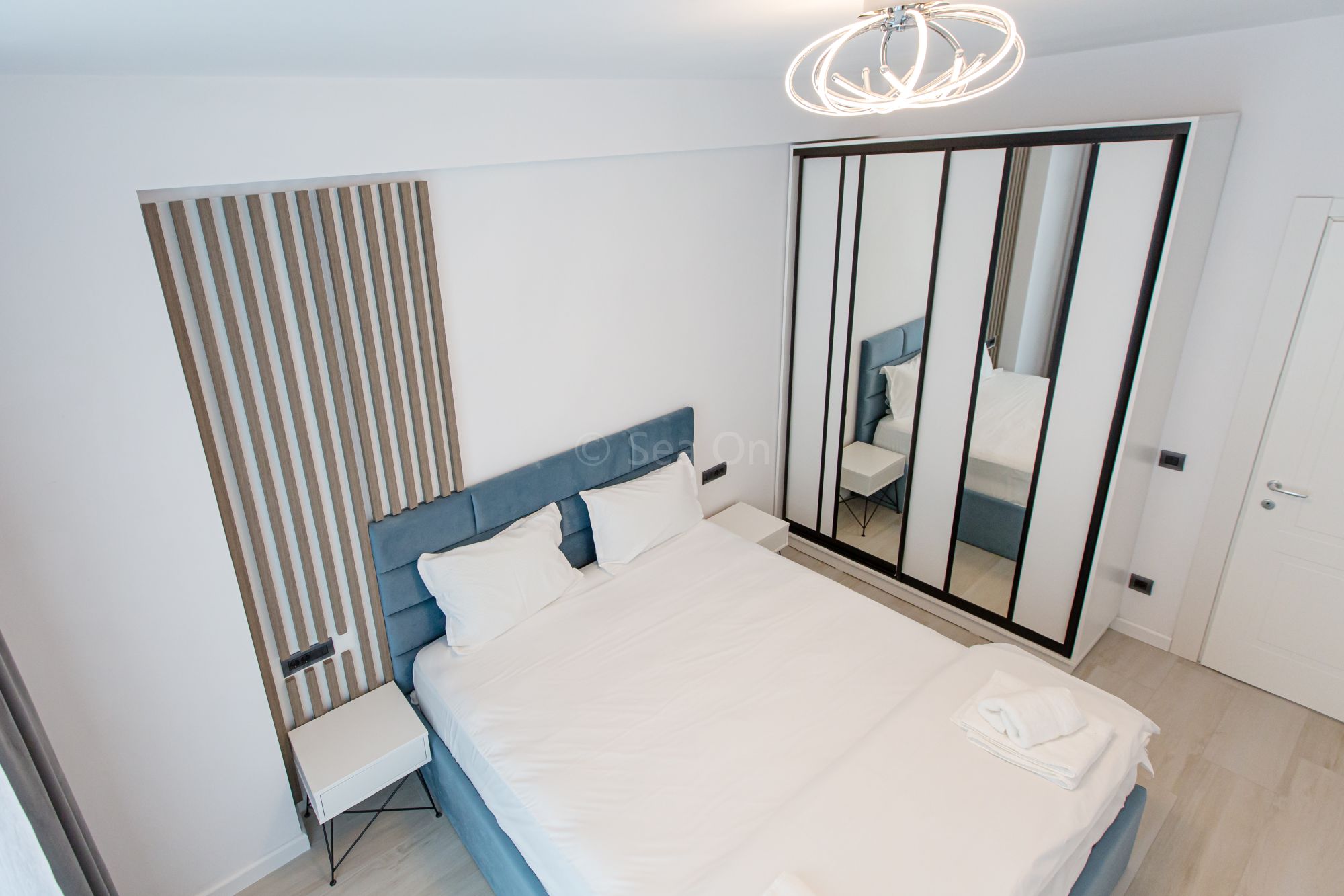 Un apartament cu vedere laterala sau frontala la mare, proiectat inteligent, avand un spatiu generos, design modern si personalizat. Este complet echipat, dispune de sistem Smart Home, mobilier de înaltă calitate, oferind confort, funcţionalitate și răsfăț.
