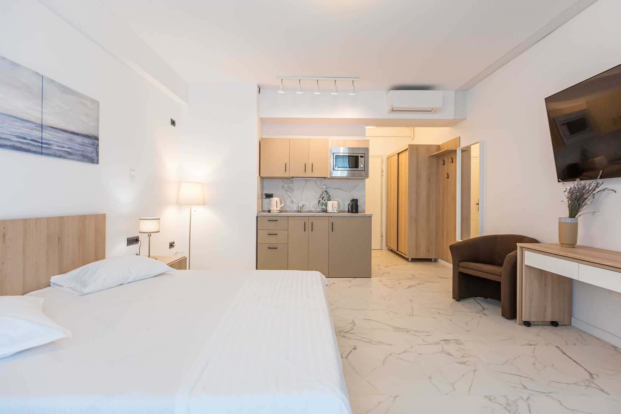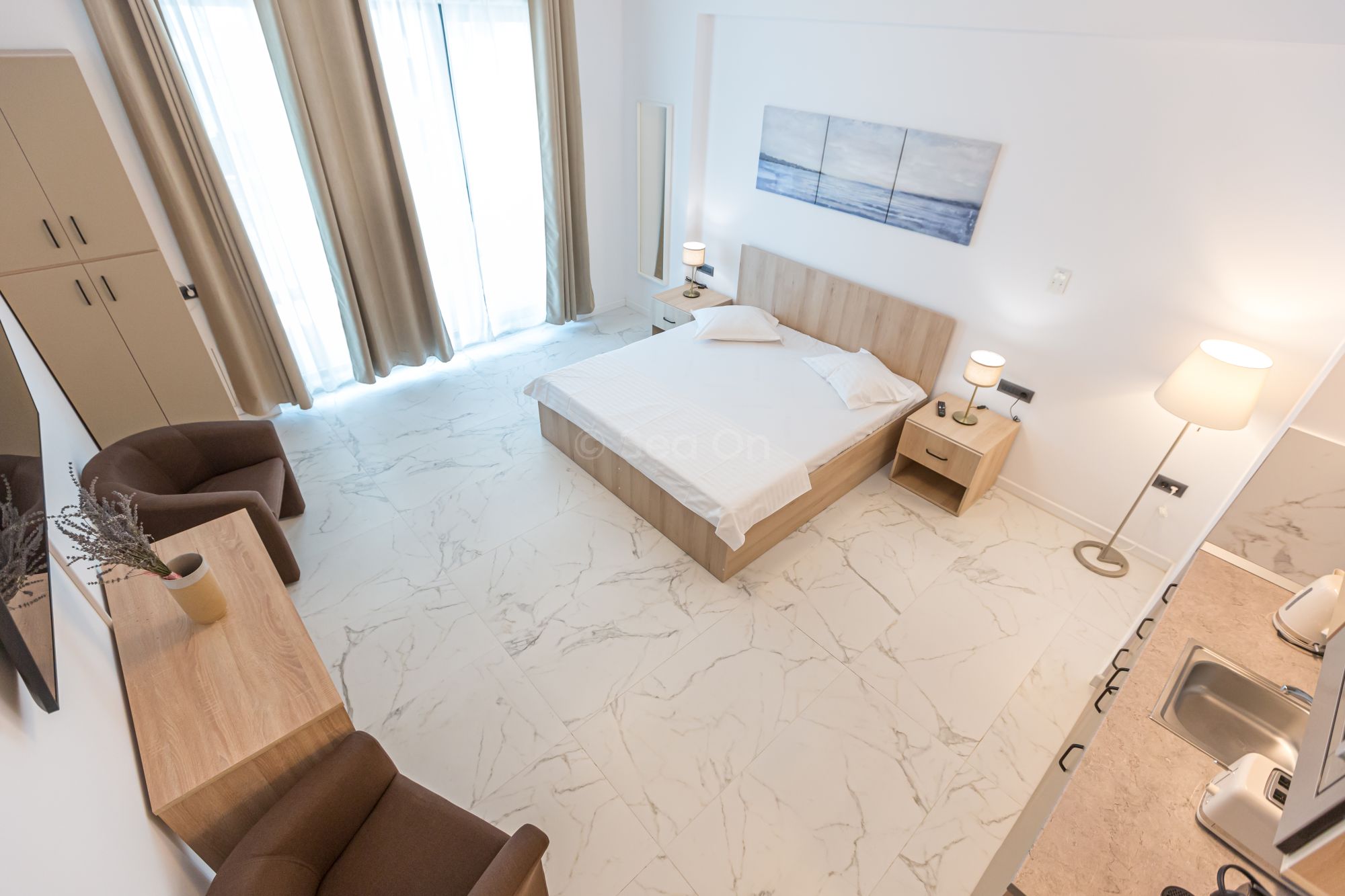 Studio-urile noastre dispun de terase, unde vă puteți bucura de briza mării, savurând cafeaua de dimineață sau admirând luna răsărind din mare.