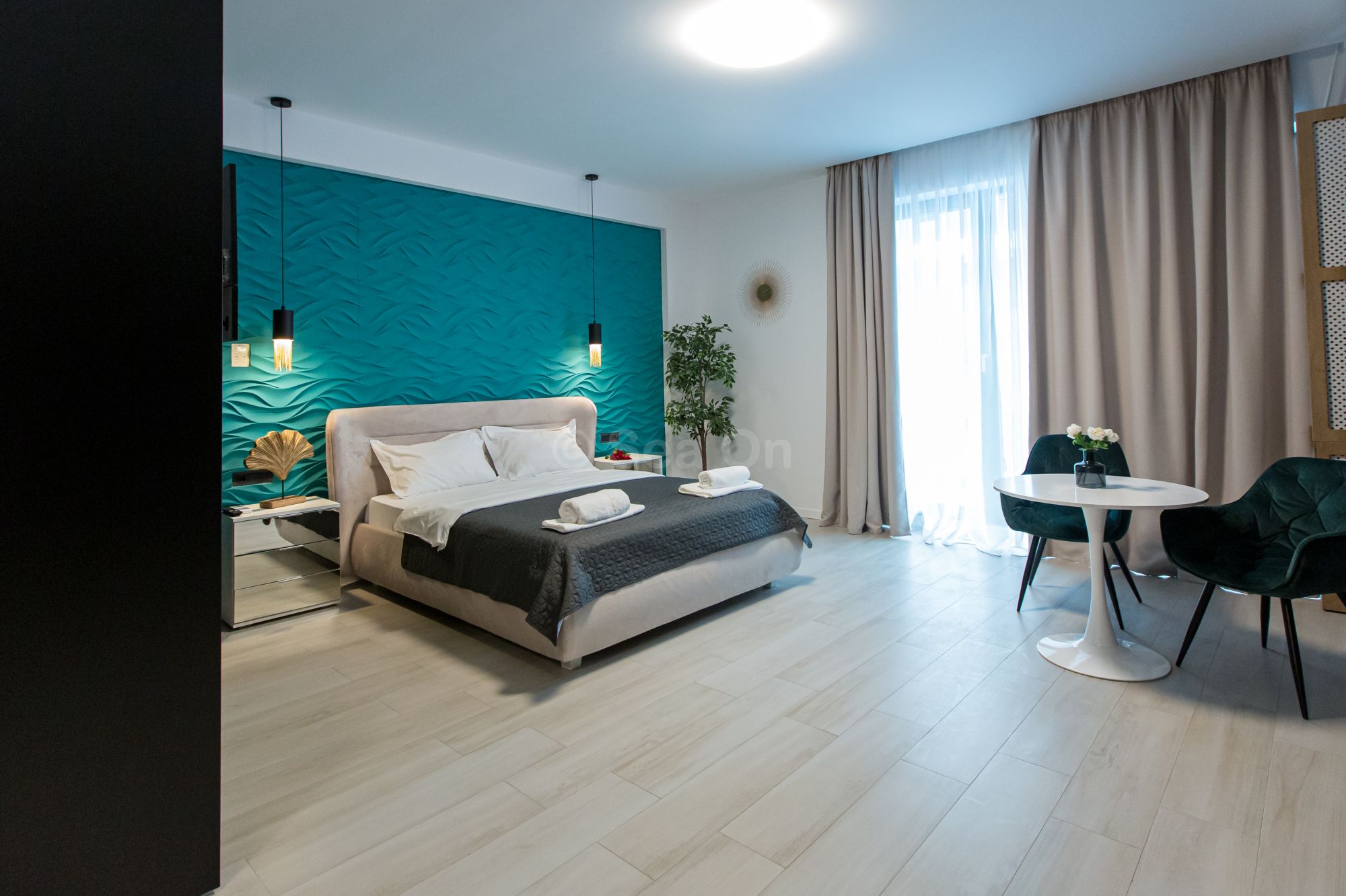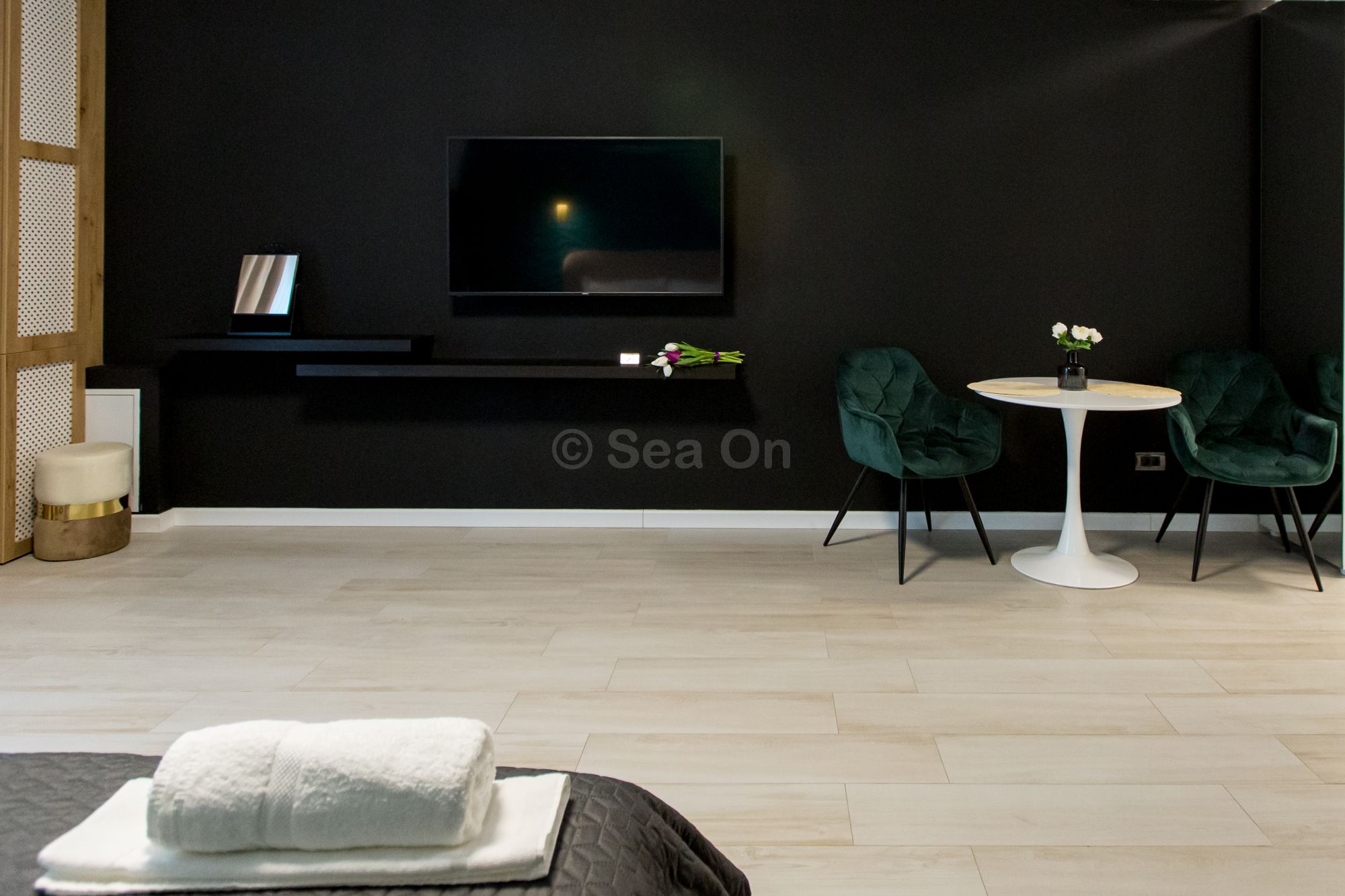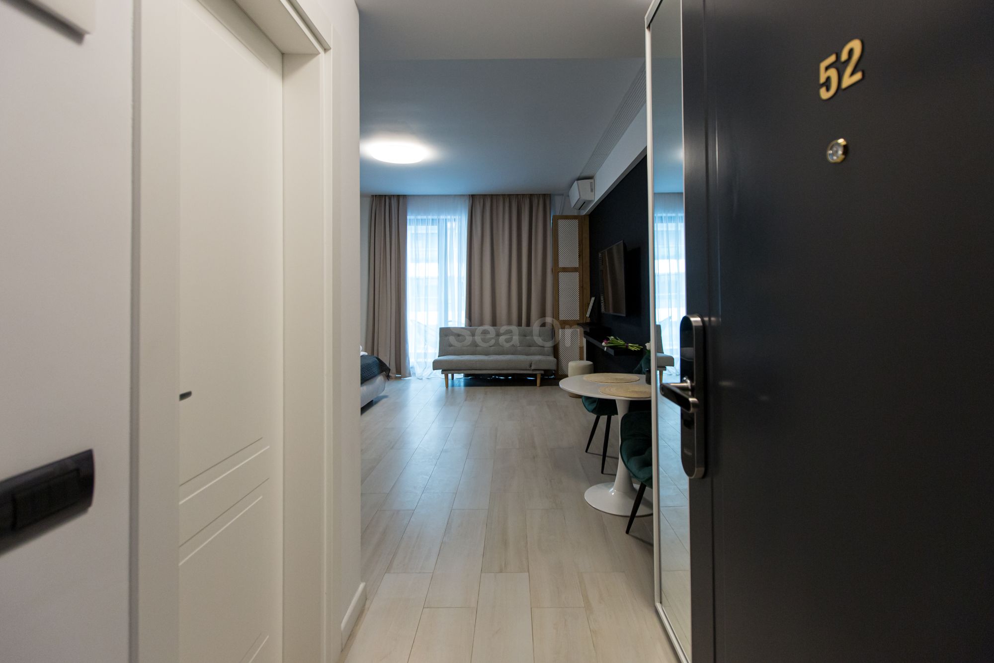 Un studio cu vedere laterala sau frontala la mare, proiectat inteligent, avand un spatiu generos, design modern si personalizat. Este complet echipat, dispune de sistem Smart Home, mobilier de înaltă calitate, oferind confort, funcţionalitate și răsfăț.