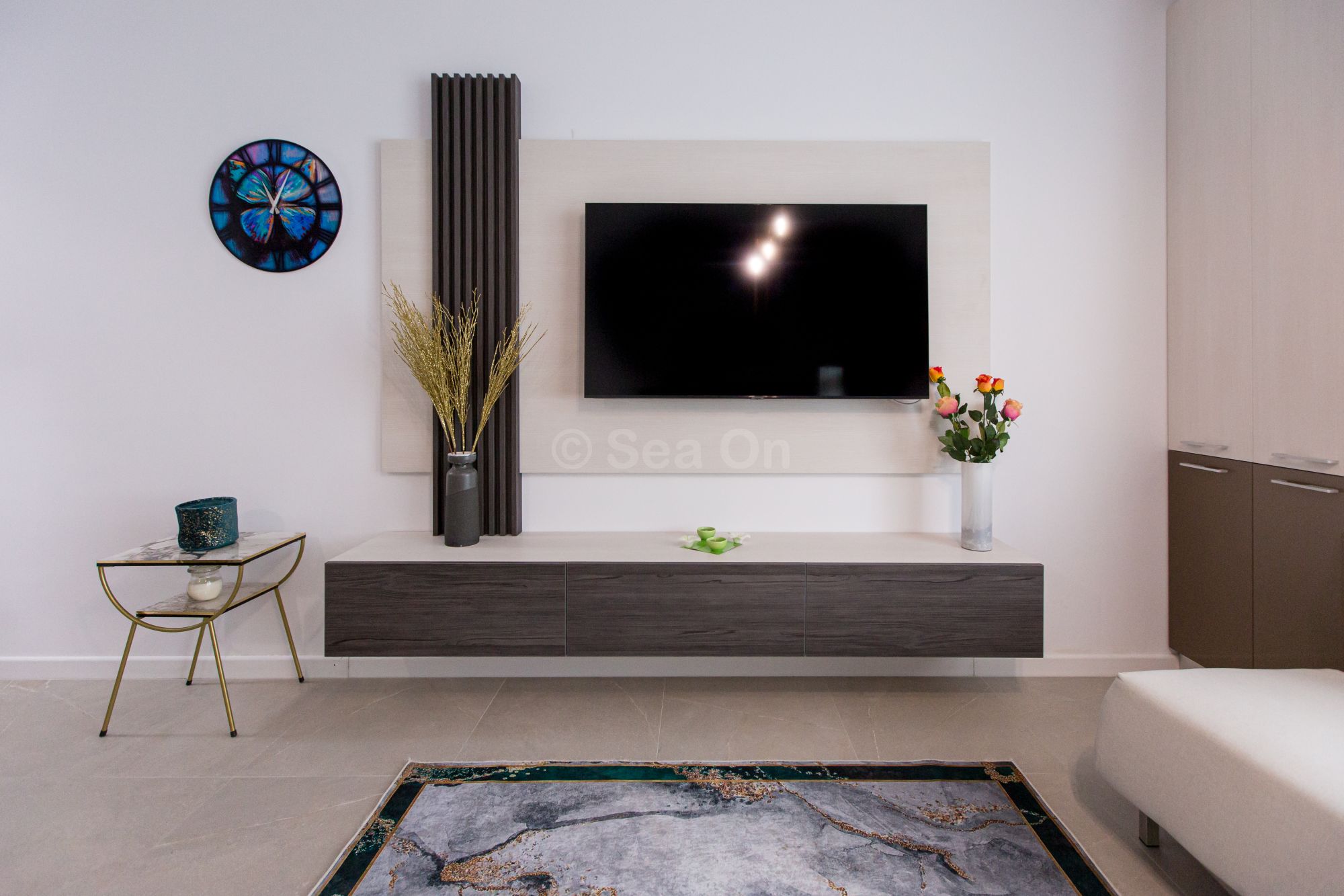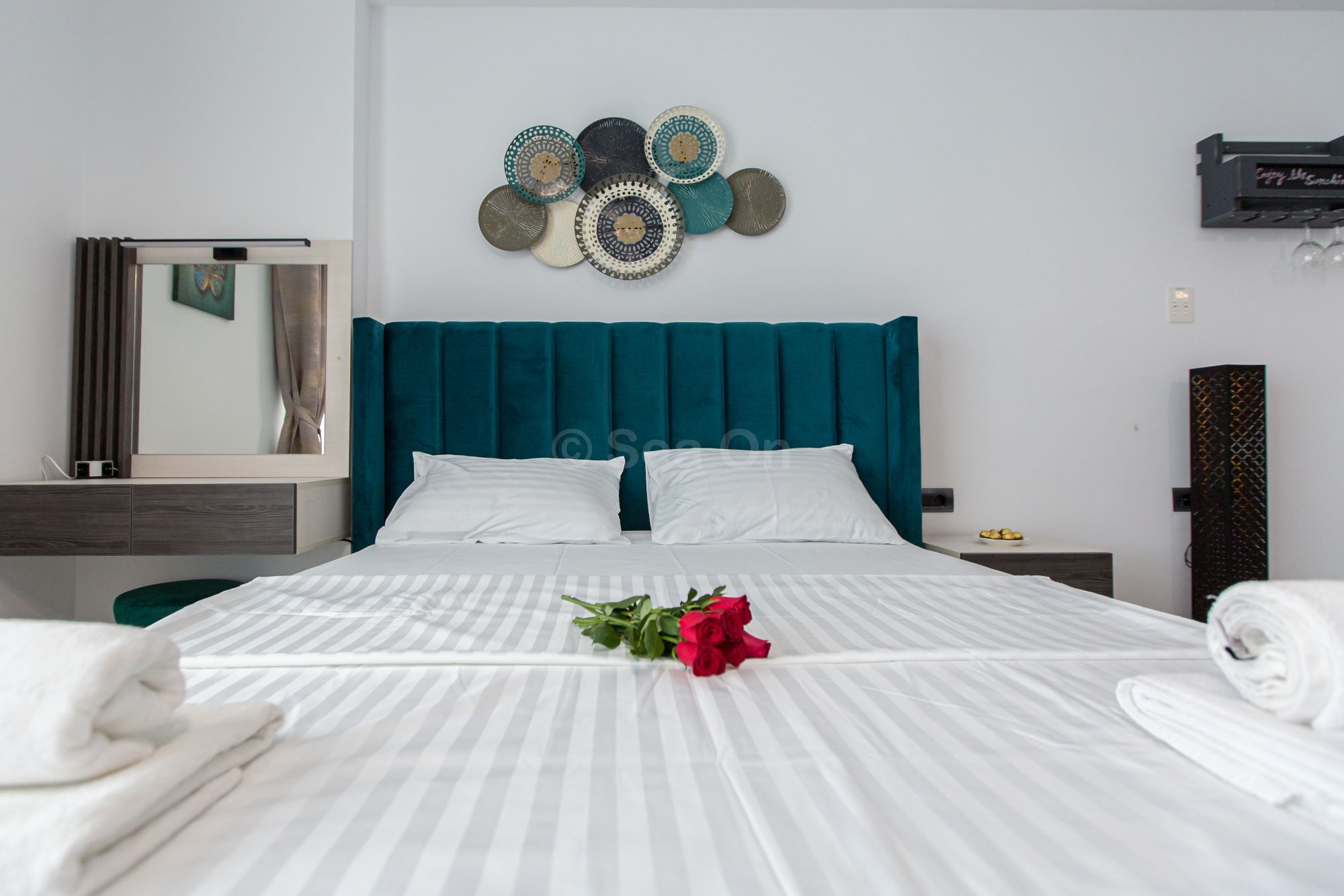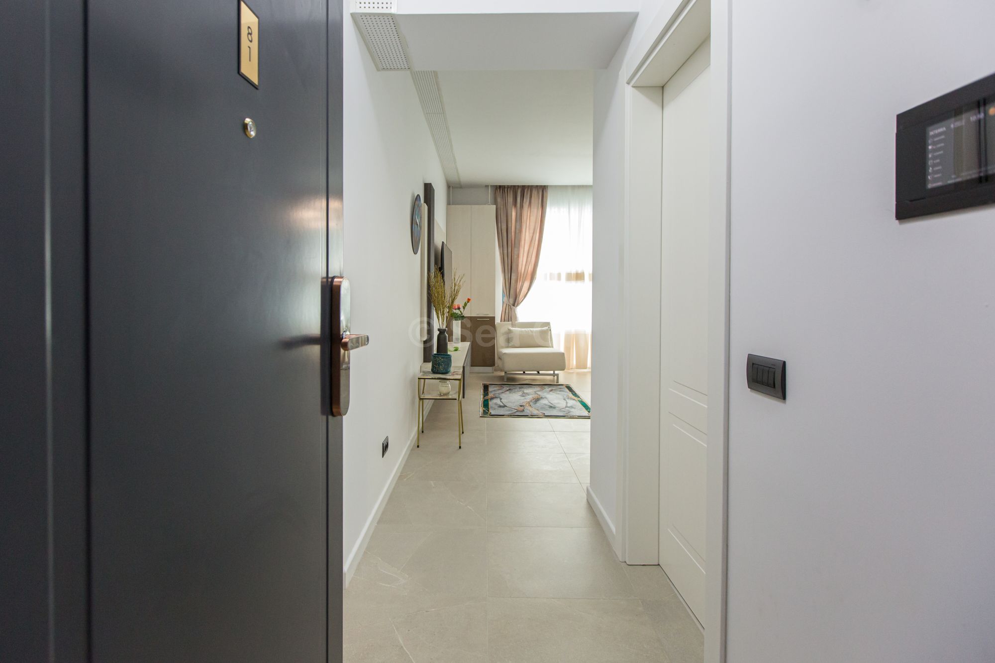 Un studio cu vedere laterala sau frontala la mare, proiectat inteligent, avand un spatiu generos, design modern si personalizat. Este complet echipat, dispune de sistem Smart Home, mobilier de înaltă calitate, oferind confort, funcţionalitate și răsfăț.