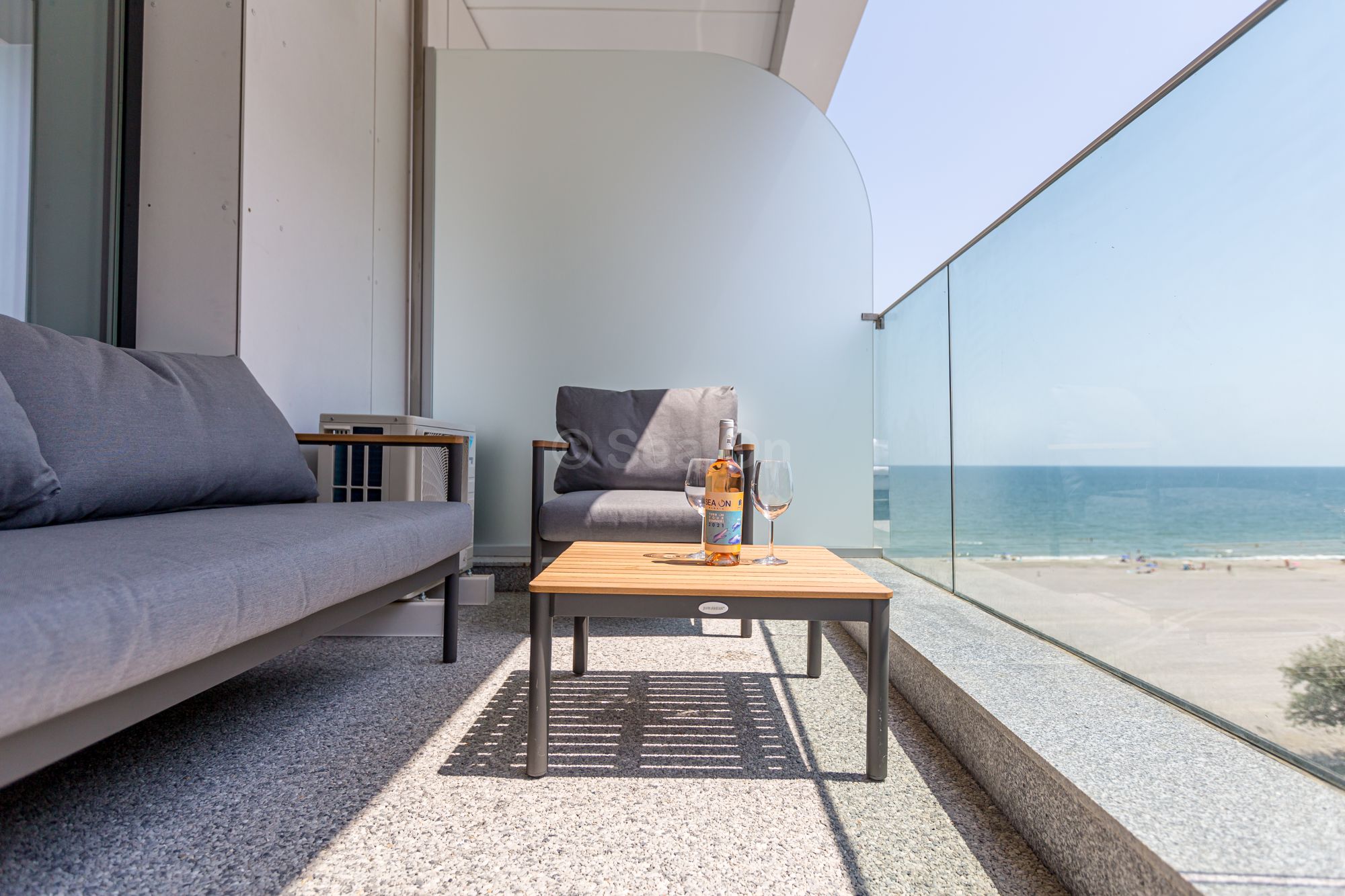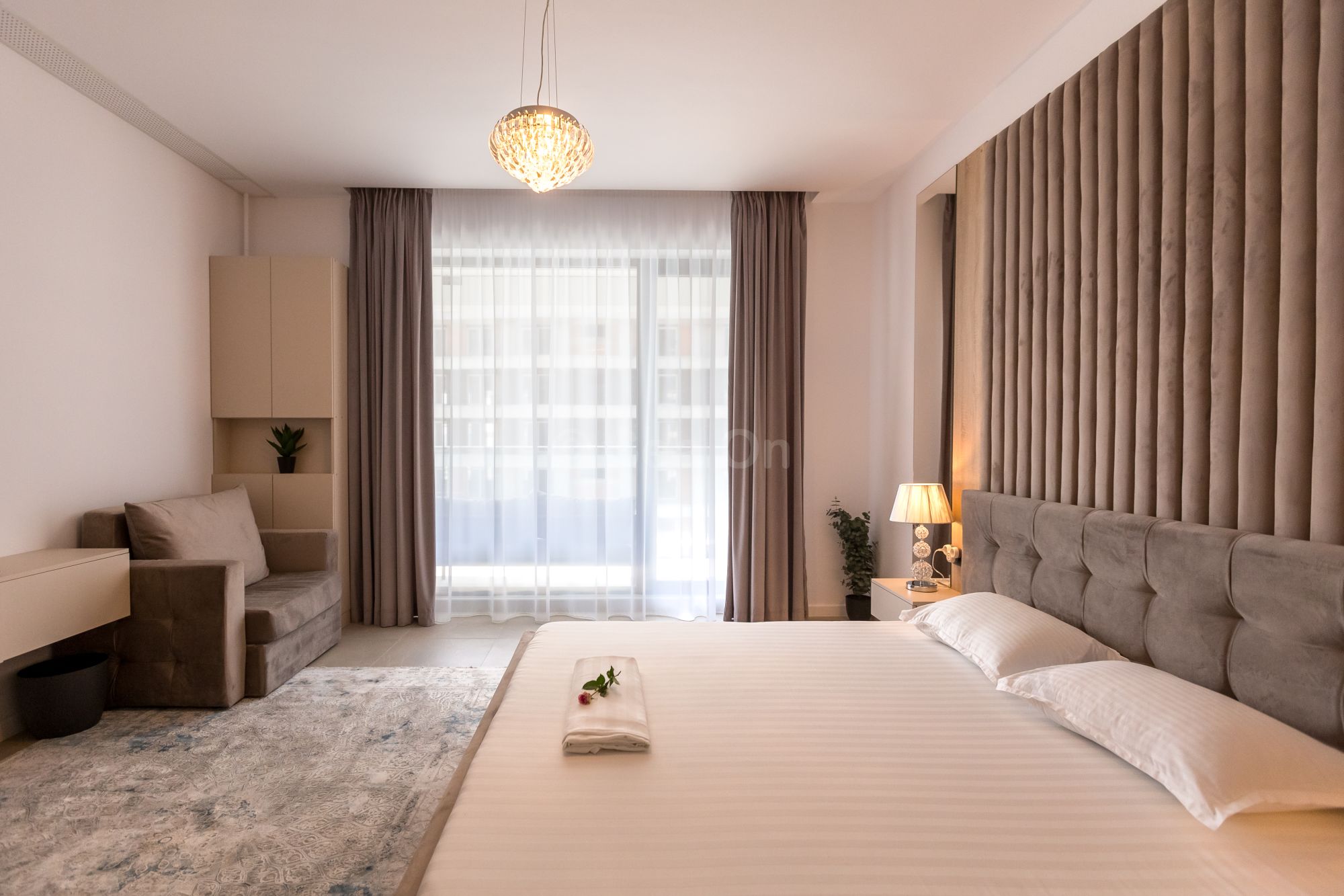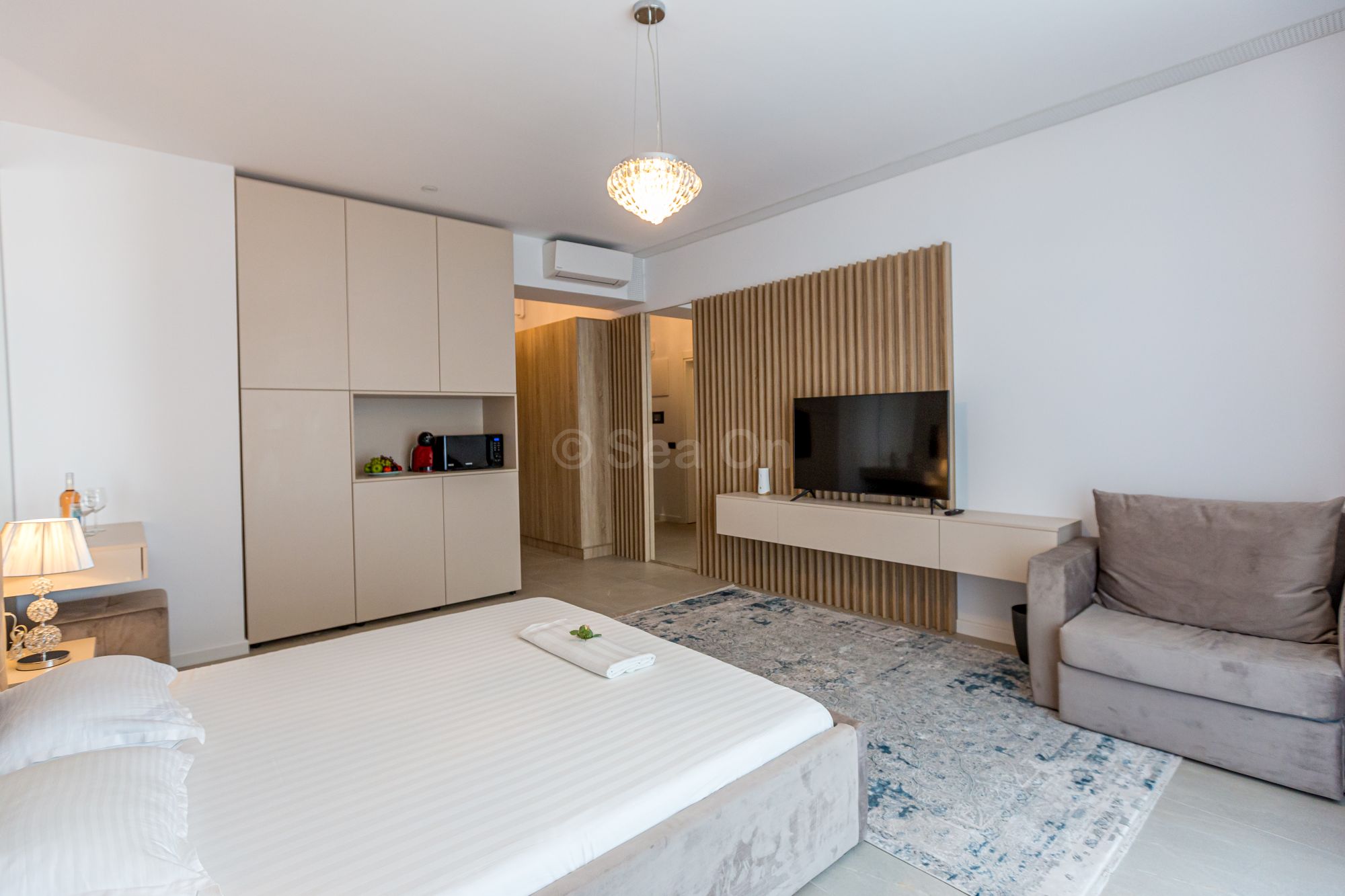 Un studio cu vedere laterala sau frontala la mare, proiectat inteligent, avand un spatiu generos, design modern si personalizat. Este complet echipat, dispune de sistem Smart Home, mobilier de înaltă calitate, oferind confort, funcţionalitate și răsfăț.