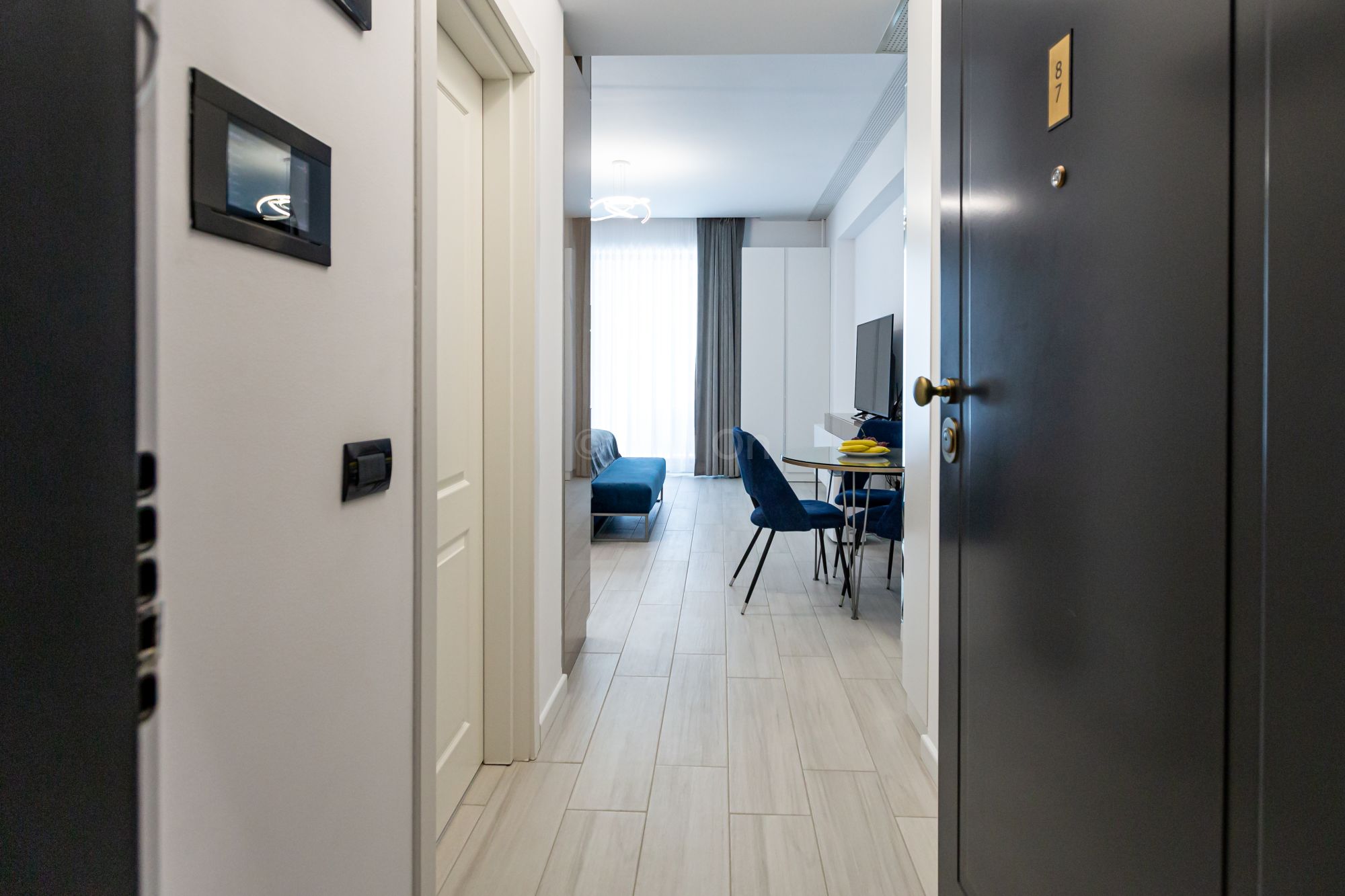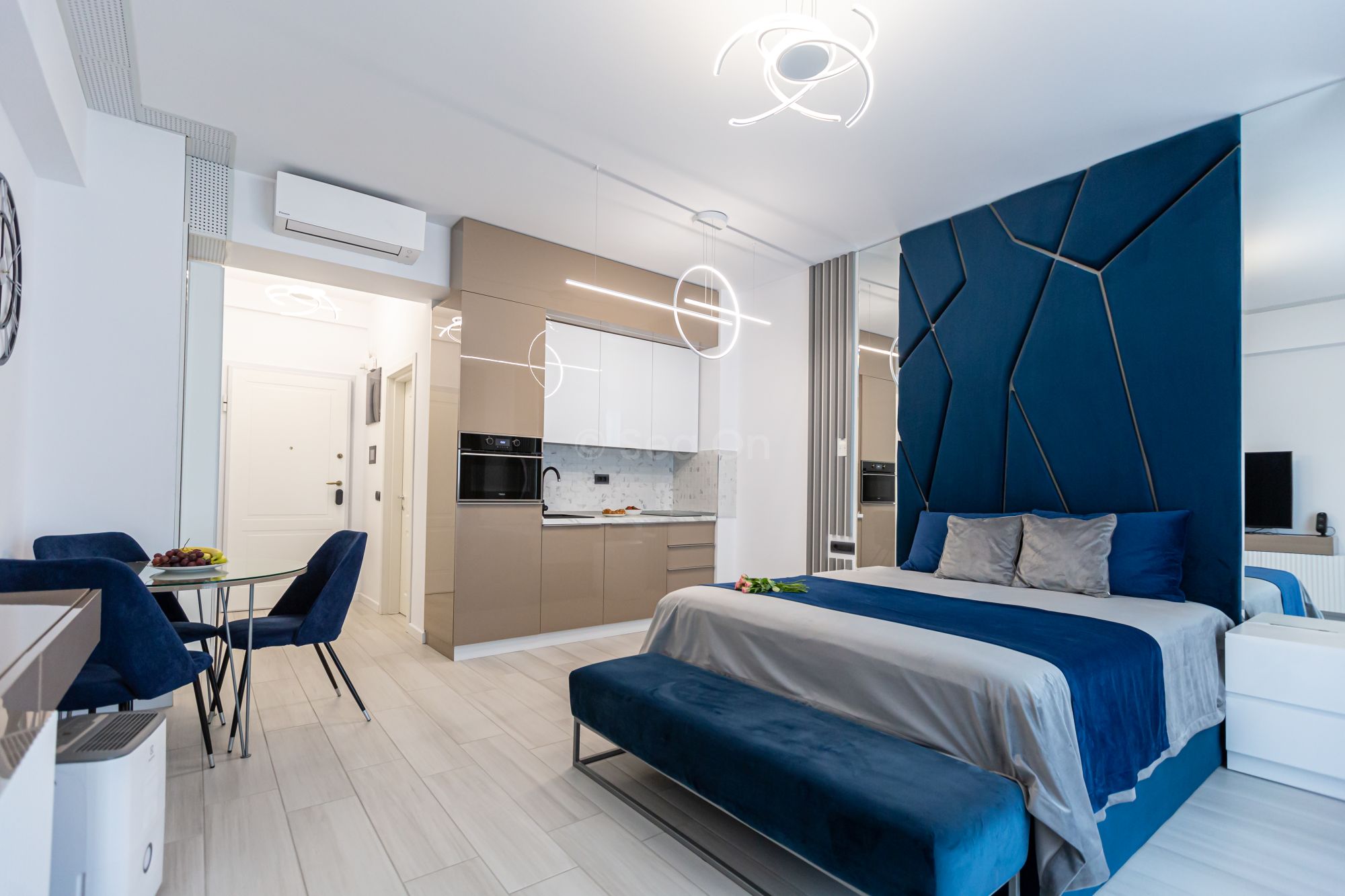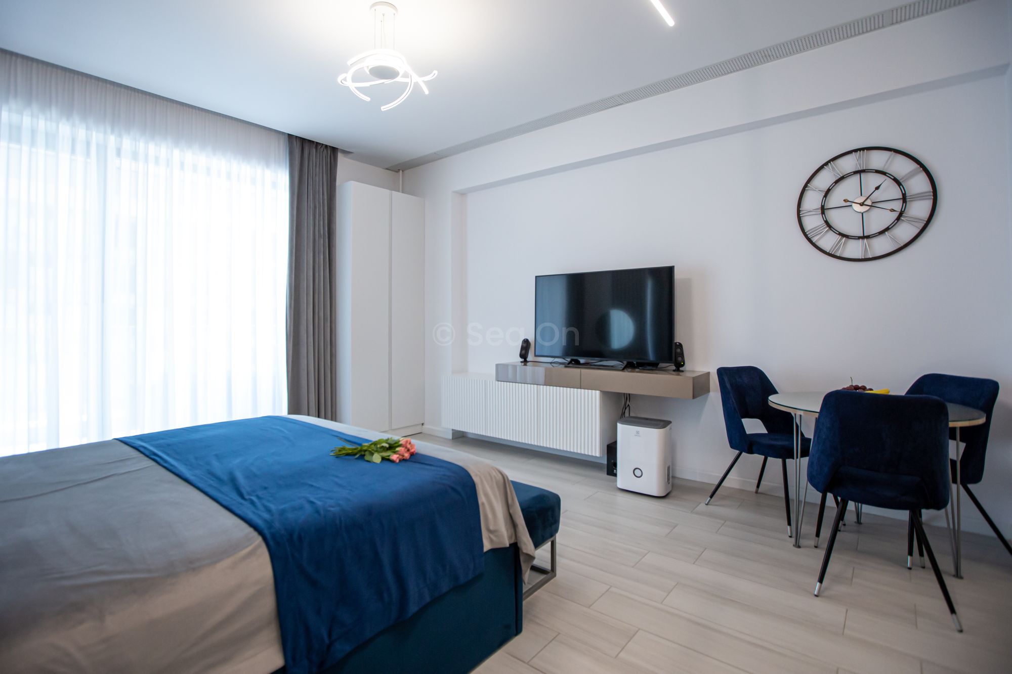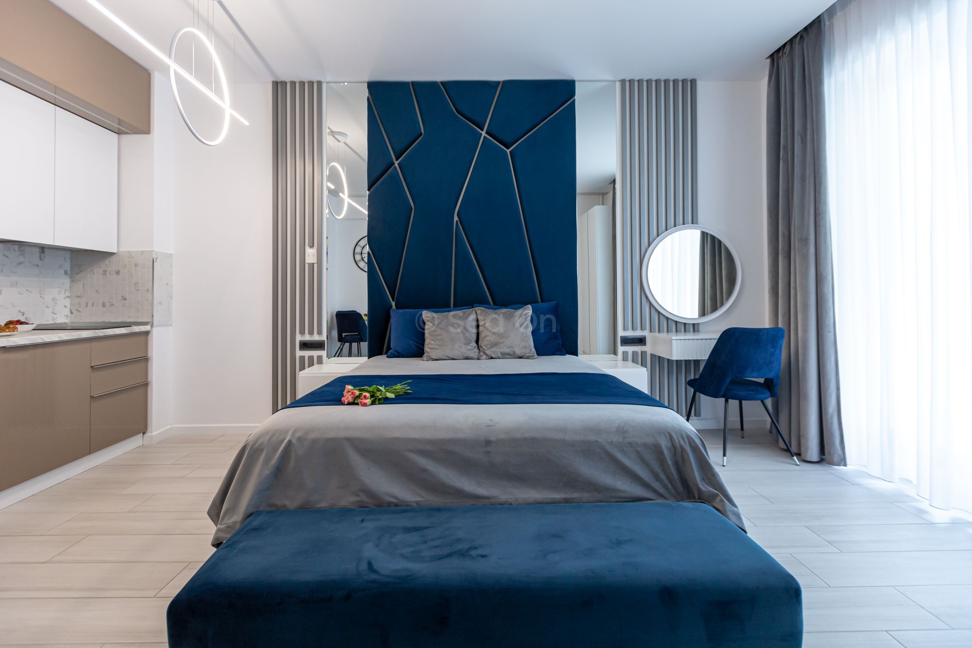 Un studio cu vedere laterala sau frontala la mare, proiectat inteligent, avand un spatiu generos, design modern si personalizat. Este complet echipat, dispune de sistem Smart Home, mobilier de înaltă calitate, oferind confort, funcţionalitate și răsfăț.